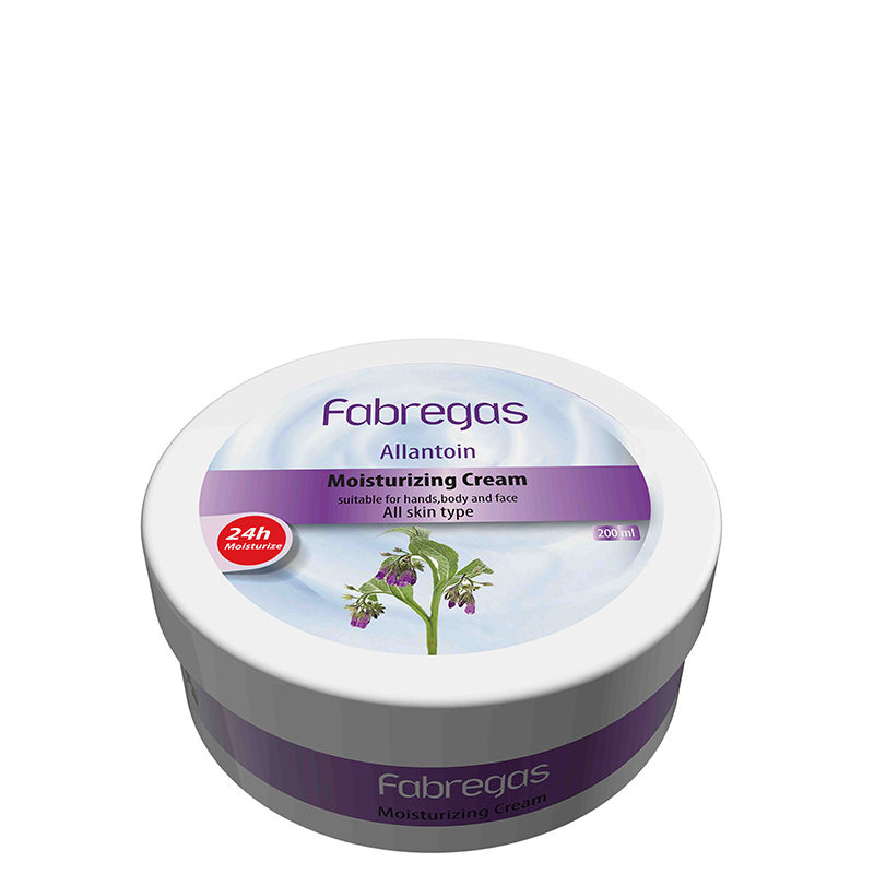 کرم مرطوب کننده فابریگاس حاوی آلانتوئین، دارای خواص نرم کنندگی می باشد که برای پسوریازیس بسیار مناسب است و اندازه پلاک های پسوریازیس را کاهش می دهد. این کرم بافت آسیب دیده پوست را ترمیم کرده و باعث بهبود جای زخم و جای بخیه می شود. استفاده از این کرم به کاهش پوسته ریزی پوست کمک کرده و مانع ایجاد قرمزی در سطح پوست می شود. این کرم برای استفاده انواع پوست مناسب است و می توان برای صورت، دست و بدن از آن استفاده کرد.